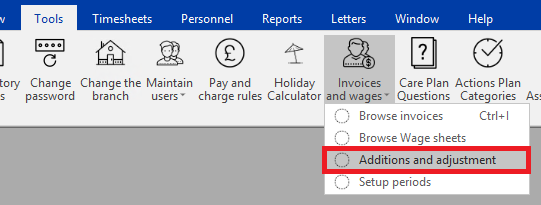 When holiday payments are made from the Holiday Pay Calculator, an expense is added into the Additions and Adjustments showing the Carers holiday pay, along with the amount they will be paid for the holiday.
