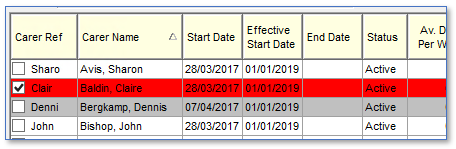 Carers appearing in Red indicate the Carer has taken holiday and have not been paid for those holidays