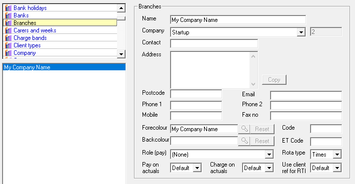 Branches in CareFree are a way of splitting your Clients and Carers in different parts of the system. Branches might be geographical areas, or you might name the branches after physical office you run as a company.