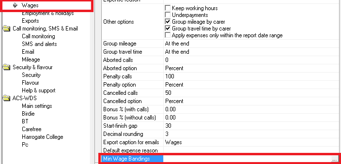 Selecting Wages will allow you to navigate to Min Wage Bandings.