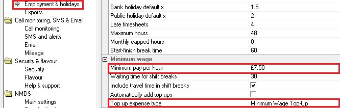Change the minimum pay per hour to the correct amount, and also choose a top up expense type, if you do not have a relevant expense type more can be added under items > expense reasons.
