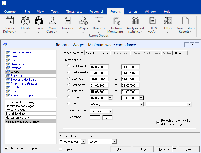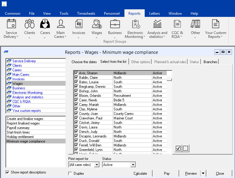 CareFree provides the facility to run a report which will check that your staff meet the national minimum wage. It is the responsibility of the management team to make sure your company is being compliant.