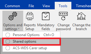 To make sure that the report works correctly, it first requires to be set up. First, access shared options. You can find this by clicking tools then options and settings on the menu bar: