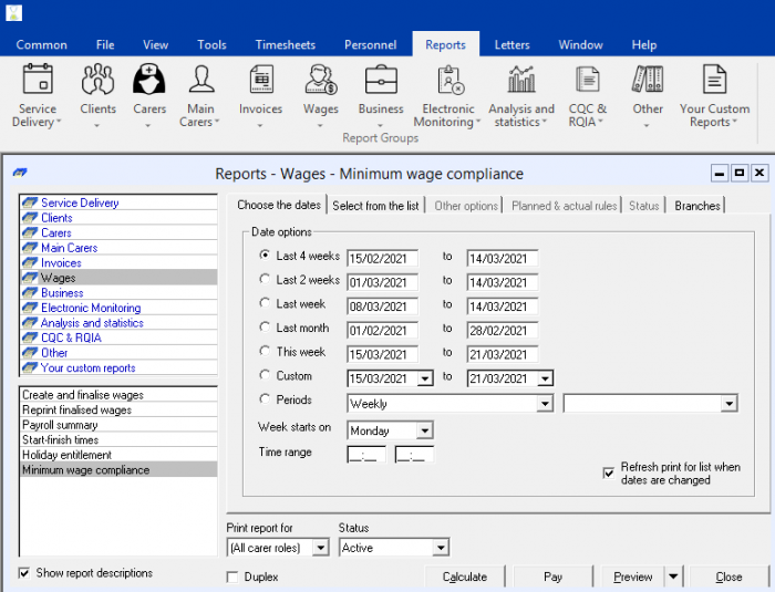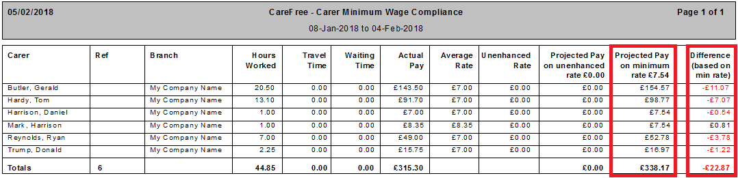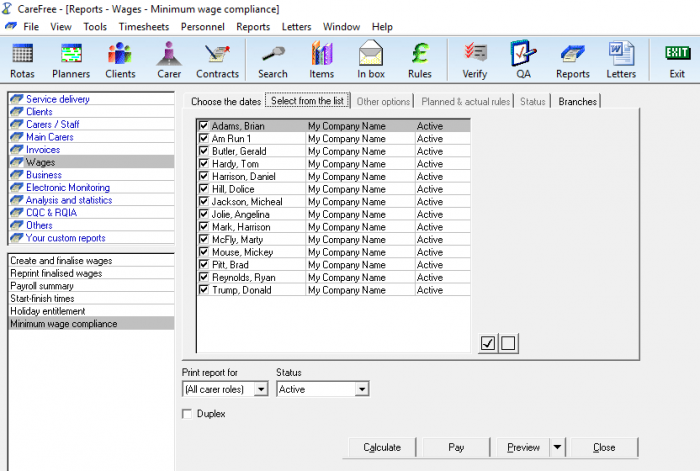 CareFree provides the facility to run a report which will check that your caring staff are meeting the national minimum wage, it is the responsibility of the management team to make sure your company is being compliant.