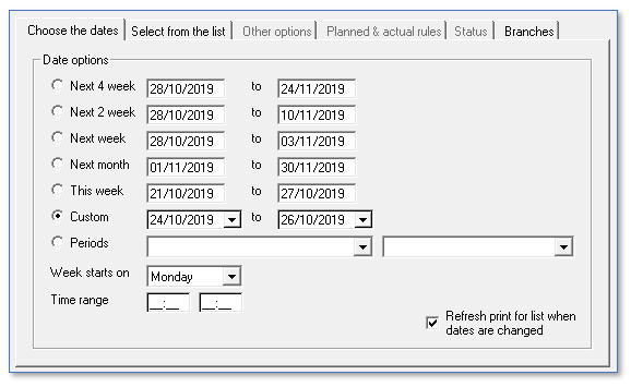 We would recommend you select 3 days worth of the rota, starting from today. You can use the Custom option to select the appropriate dates