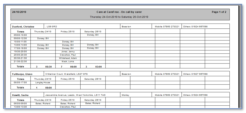 The OnCall report is useful report that can be run from your CareFree system.