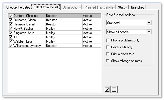 2. Choose the Carer whose rota requires printing and / or emailing to the left