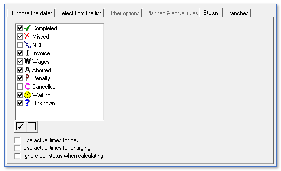 7. You can change which call statuses appear on the rota by using the Status tab - for example, some companies prefer not to show cancelled calls on the Carer rotas (NCR calls)