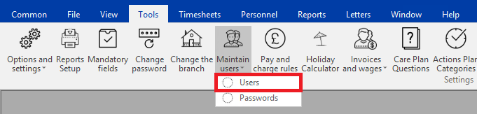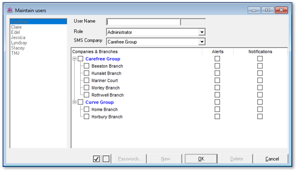 By default, usernames in CareFree are the first name of the user but this can be different. Before your database is updated, you should check that all users know what their username is. Users that are logged in can do this from seeing which name is the bottom left of any CareFree screen.